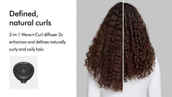 Includes the new Tension comb 2x attachment, to dry hair fast, while stretching and smoothing curly and coily hair.